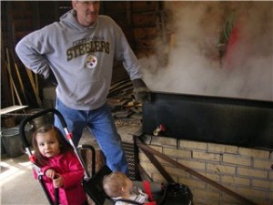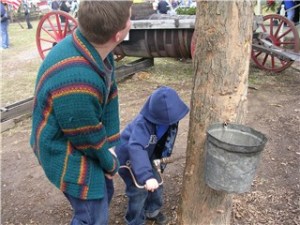 - A guy named Larry who demonstrated how to mix up maple sugar in a hollowed out log of “cucumber wood.” He also elaborated at great length about how his Grandpap used to make maple liquor using the same log. The Meyersdale natives standing behind me sighed heavily and muttered, “Jeez, hurry it up, Lar.”