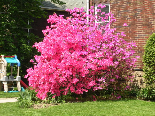 Here’s a gorgeous pair of azalea bushes.  They look like one bush growing two shades of flowers: