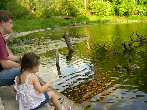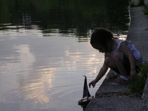 Years ago, there used to be a boating house here, but now the only boats on the pond are toy ones. Jeffrey likes to make little leaf boats and float clovers on top.