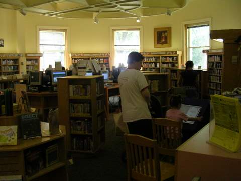 Here is the main fiction room. Brian and Eleanor are experimenting with this “My Storyteller” thing that some CMU students built.