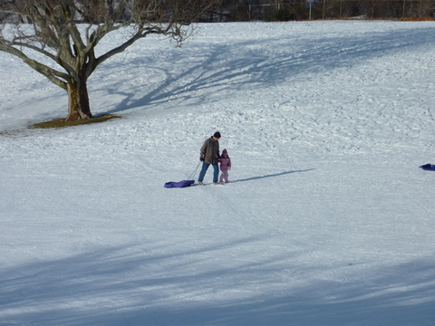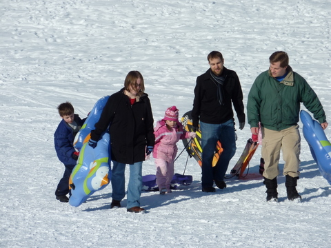 We also hosted a sledding party last week, attended by Brian’s parents and two of his siblings. The kids adored bossing around their aunts and uncles, dictating who got to go down the big hill with them. Grandpa even pulled Eleanor back up the hill (can you tell they are the only grandchildren on that side of the family?).