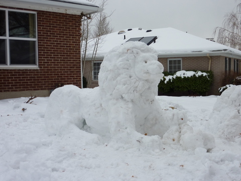 Behold the mighty lion! It is seated among the remains of the elephant sculpture he made a few weeks ago. Like it’s feasting on its carcass or something. Mmm!