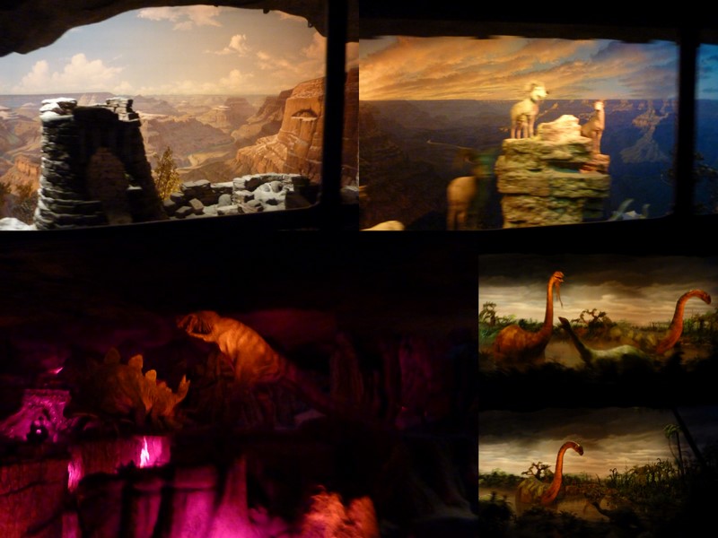 Best Bizarro Moment #4: If you take the time to ride the Disneyland train the entire way around its circuit, you will eventually pass through tunnels that show you dioramas of the Grand Canyon (complete with taxedermied animals and a miniature cliff dwelling) and animatronic dinosaurs.  Again, wish I was making this up, but I have to admit the endless flow of lava in the dinosaur tunnel was cool.