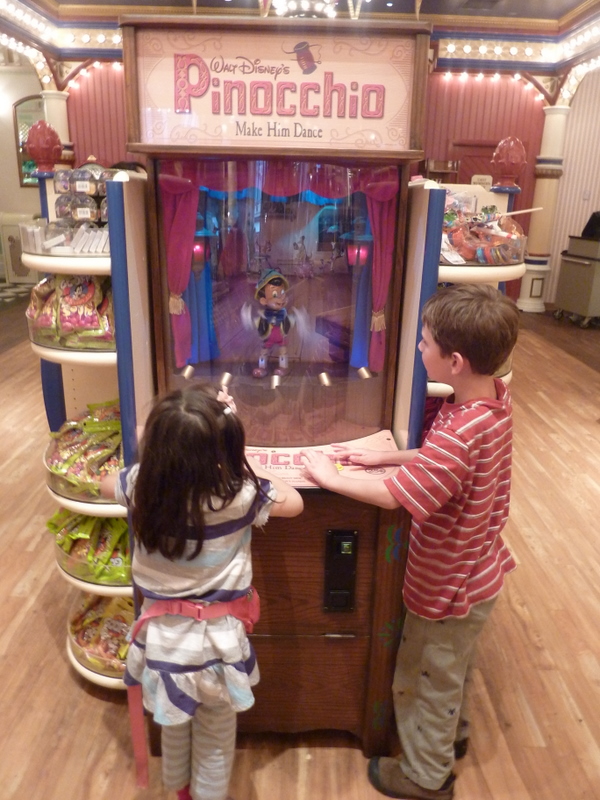 Best Bizarro Moment #3: In the Penny Arcade, there’s a game where children can push buttons to mercilessly force Pinocchio to dance.  Dance, Pinocchio, dance!