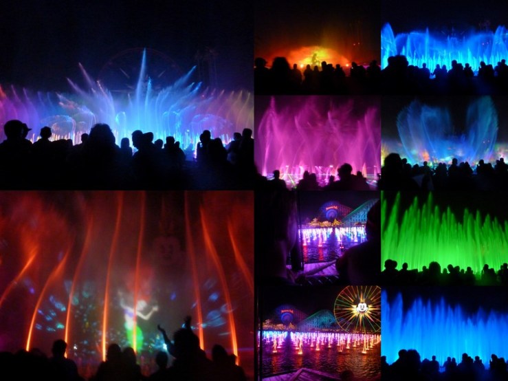 Best Show: The crazy “World of Color” fountain show at the Disney California Adventure.  It’s designed by the same engineering team that built the famous fountain display outside the Bellagio casino in Las Vegas.  The water jets shoot up higher than the Ferris Wheel.