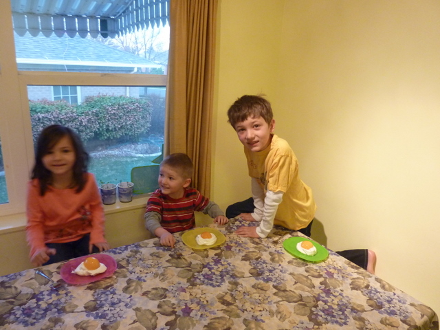 These are ostrich eggs, which I fried up fresh this morning. It’s a great way to get the kids dressed in the morning on April 1. I told them that I got them from the zoo yesterday afternoon. Why didn’t they see them in the fridge? Because I didn’t want them to play with and break them, of course.