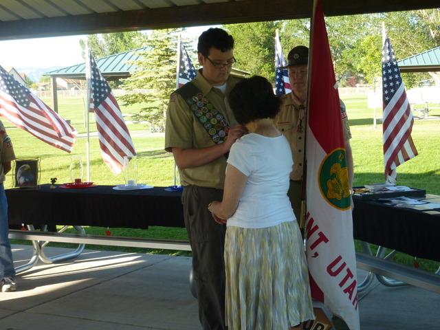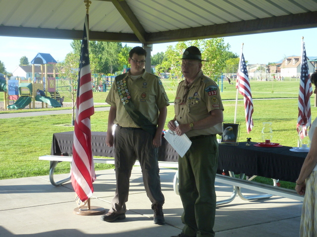 My dad was able to represent the Scout Council and give Alex his award.  (Isn’t his hat awesome?  Brian and I both come from big Scouting families).