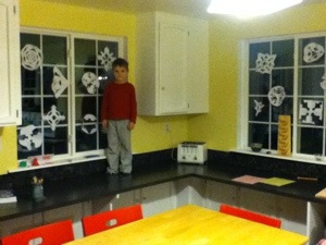Tonight’s FHE activity: snowflakes! Irony #1: there is very little snow in Seattle. #2: this was supposed to teach the kids (according to the lesson plan in the Friend magazine) that we are all unique and loved in the eyes of God. Brian could not help but point out that the belief that “no two snowflakes are alike” is untrue. To which I retorted that no two snowflakes can occupy the same space at the same time and therefore have unique experiences despite being molecularly identical