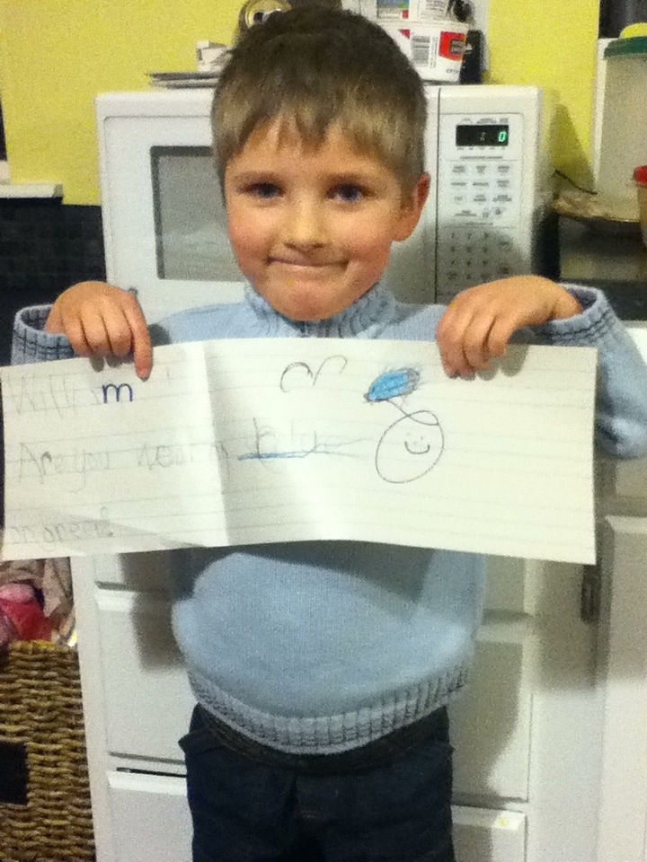 Anyway, the Seattle-Atlanta game is this weekend, so it was Seahawks day at school and all the kids wore blue, green, or white. William’s sentence of the day at in kindergarten was even “Are you wearing blue or green?” Which is cute, but I feel bad for the kids who decided to dress otherwise.