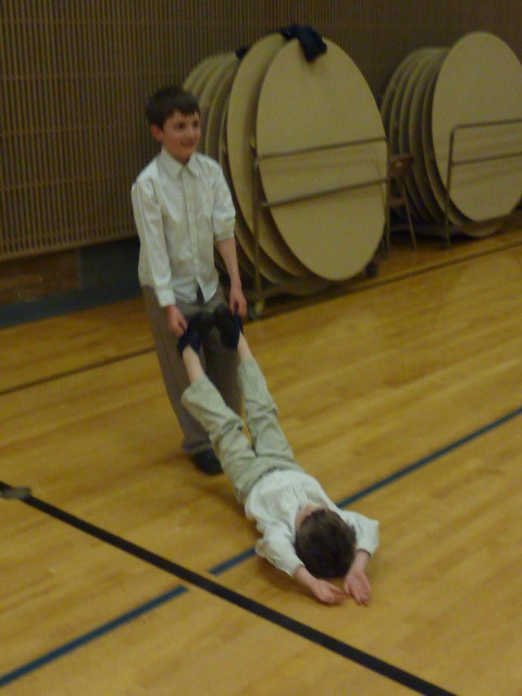 Unlike in Utah, where the Stake Primary organized everything, we put together everything ourselves (with some help from the ward mission leader). Everyone in the family participated: William lead the music (Katie assisted by doing interpretive dance during the songs), and Jeffrey and I played a duet of “Keep the Commandments” on the piano.