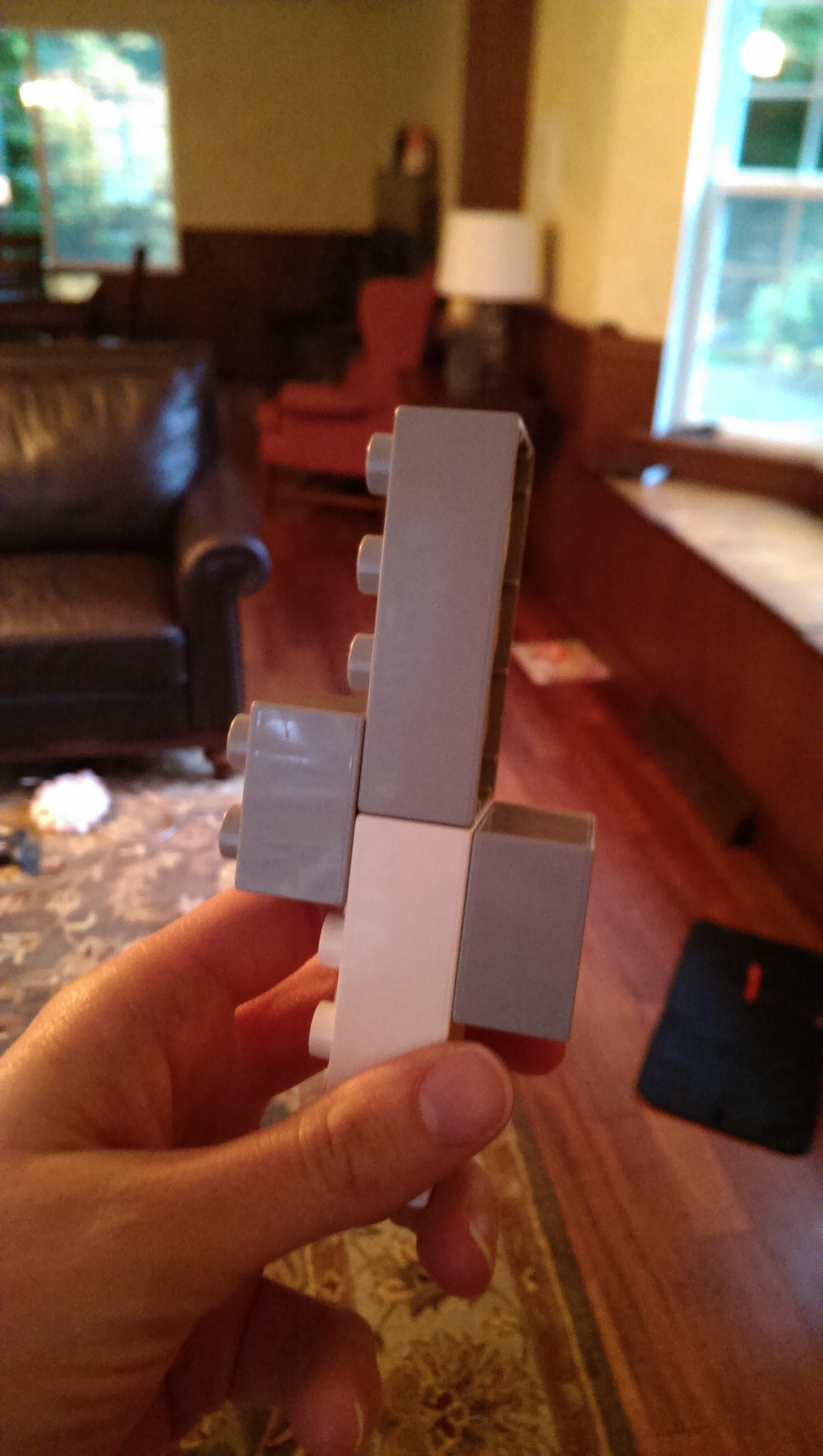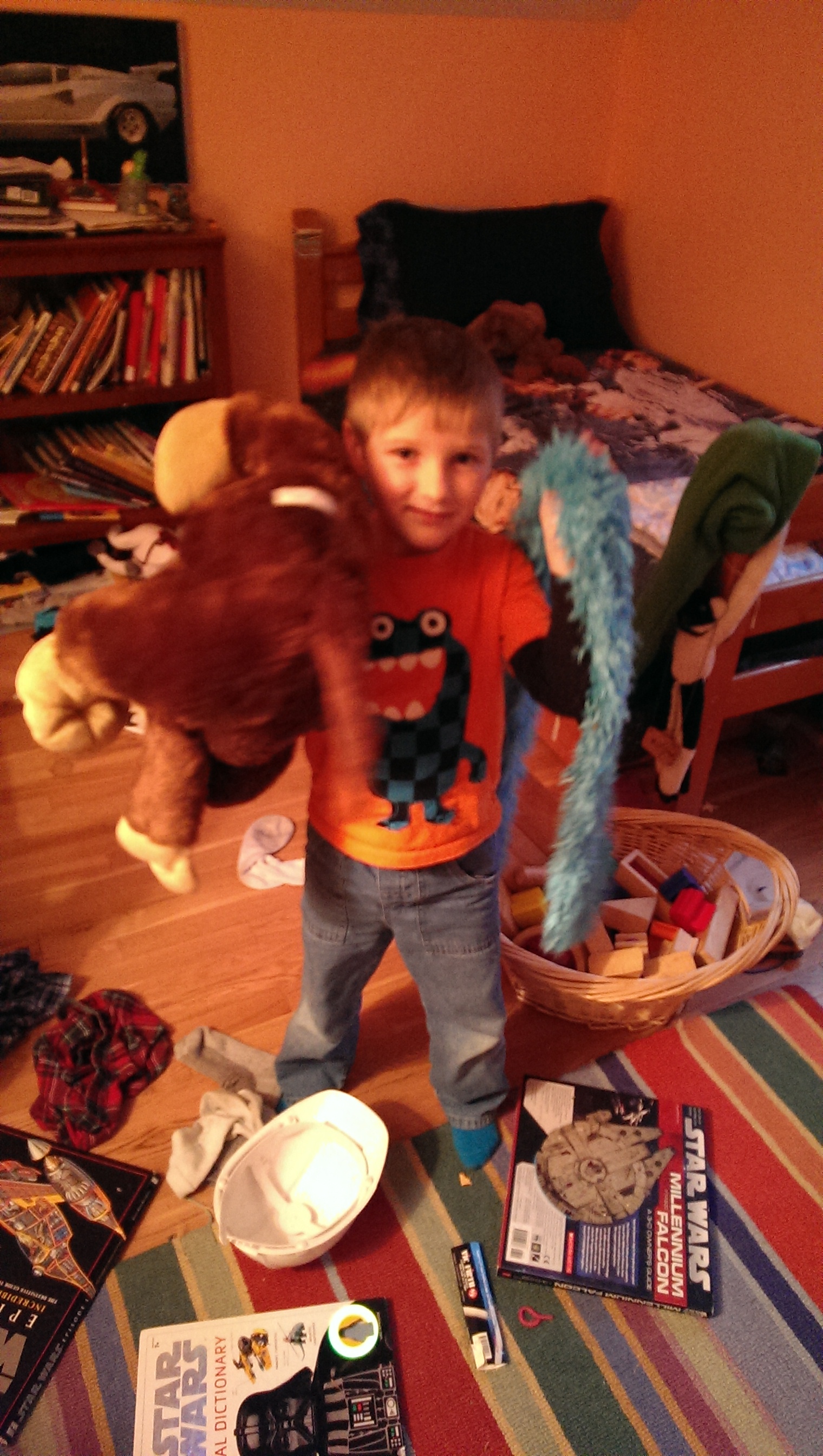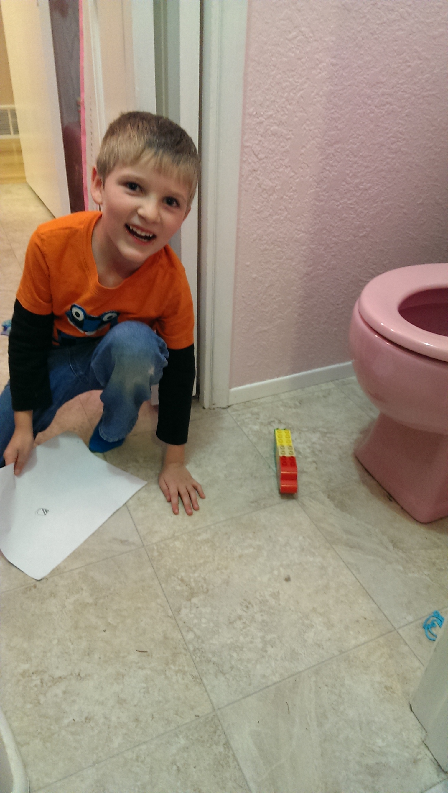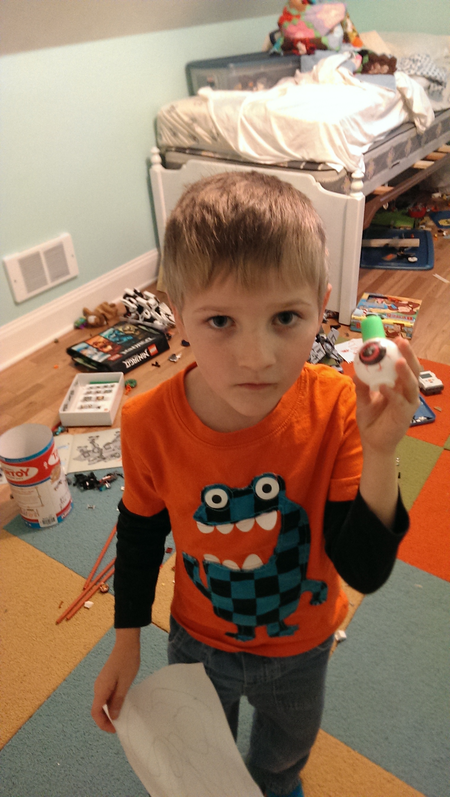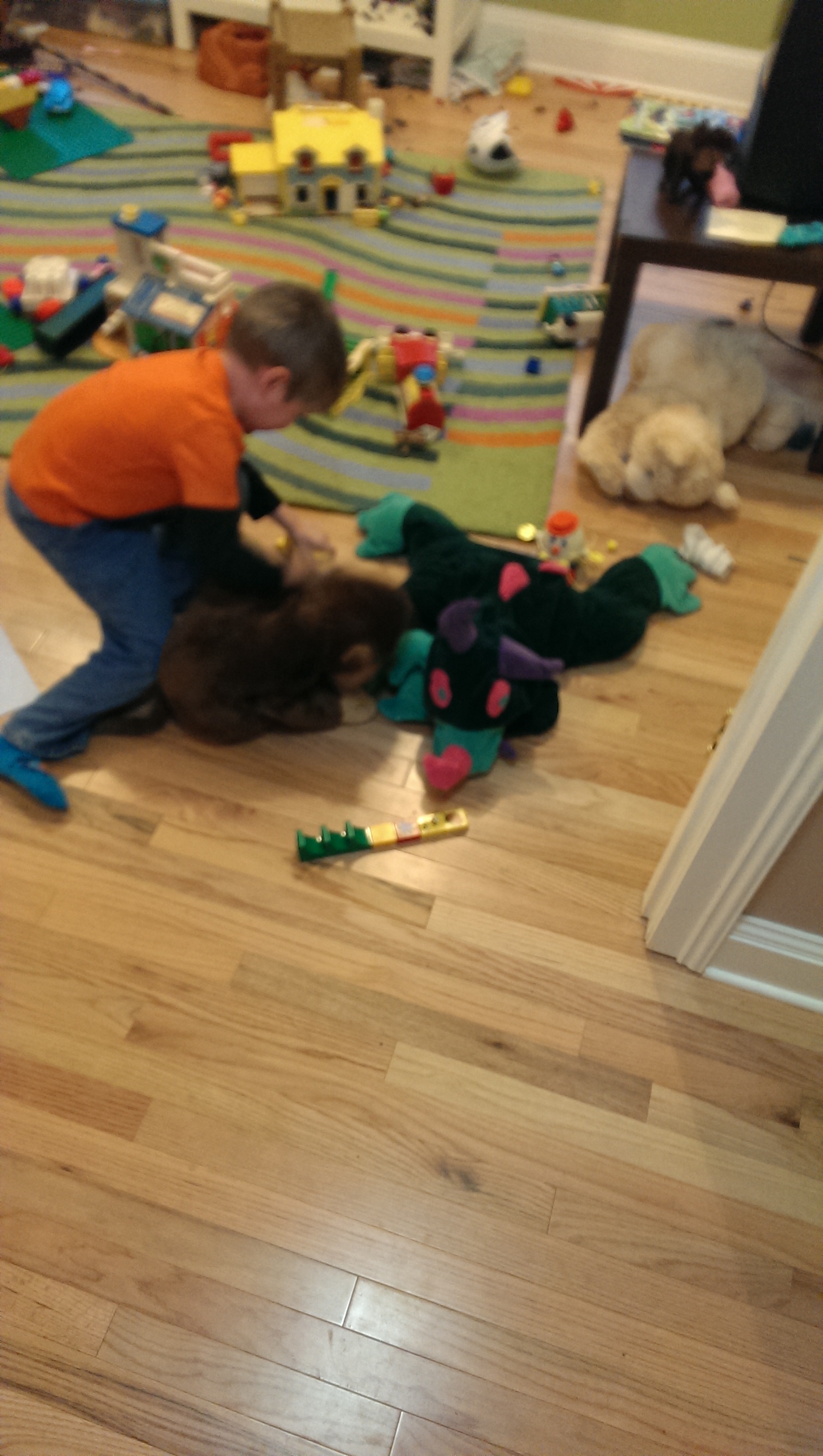 . . . and another one in the girls’ bathroom. The wand made quick work of them all. Of course, the really adorable thing was how William would dart ahead of me and hide, so that he could make the monster “spring” out at me with a growl. I made the appropriate shocked surprised noises.