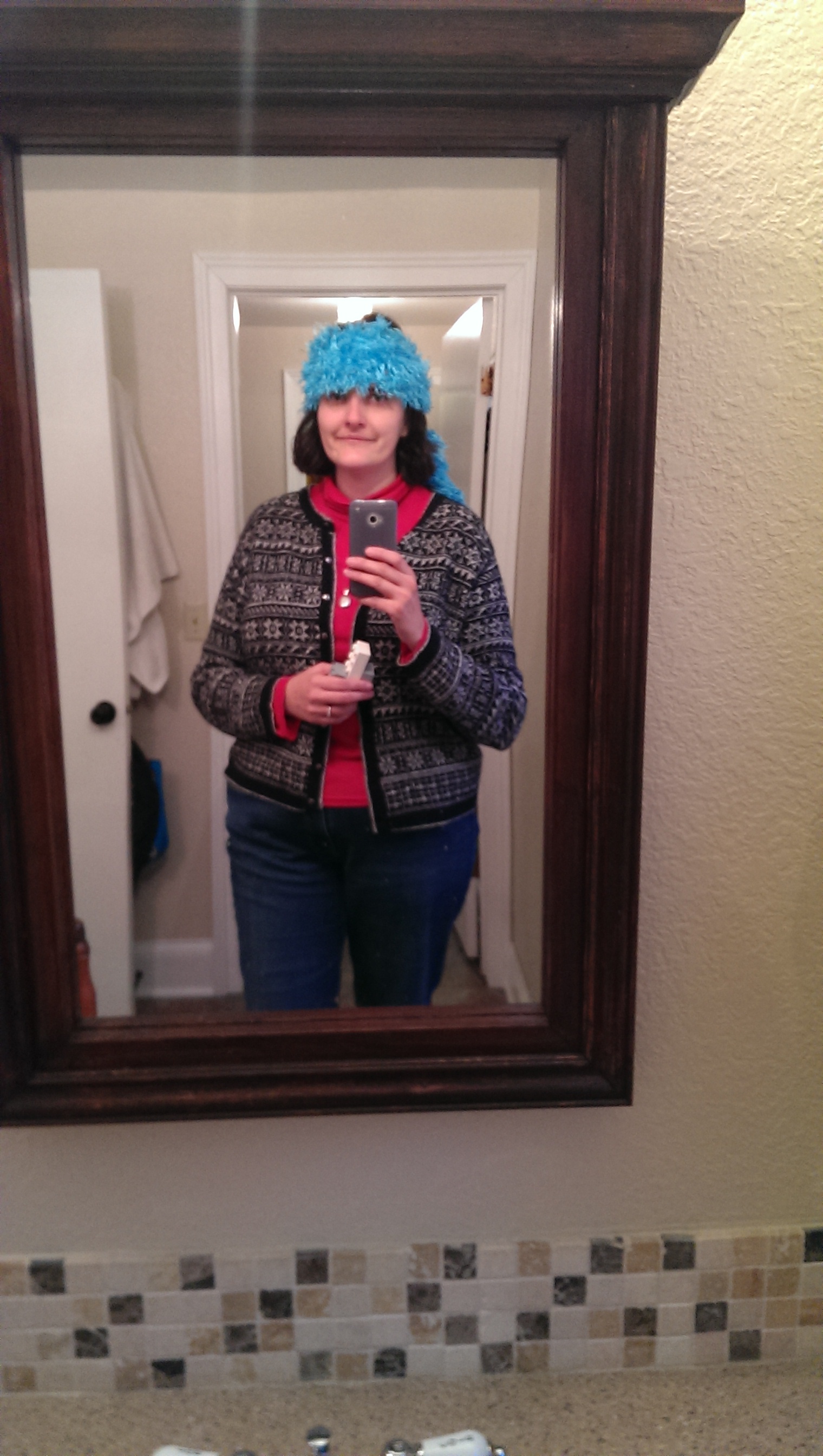 . . . and a helpful monkey who I could summon to help me fight bad guys. William also gave me the fuzzy blue boa and told me to wear it on my head for protection.