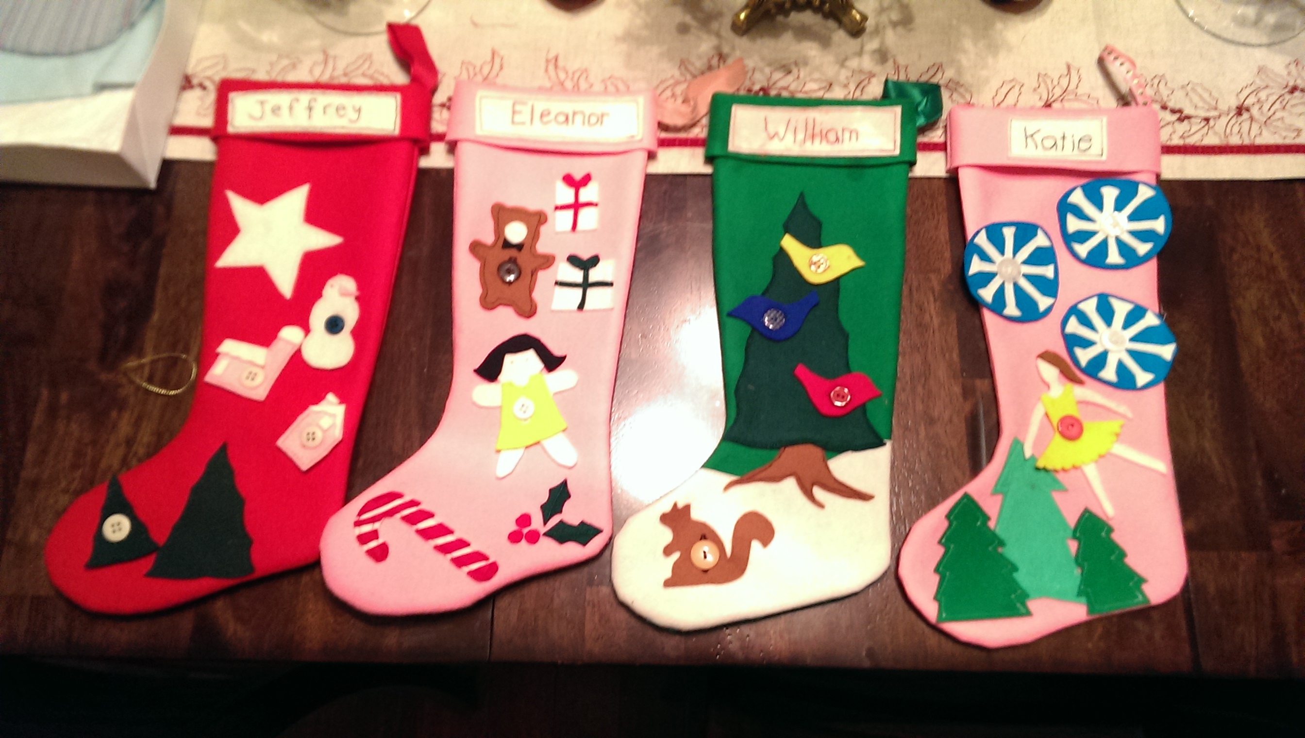 I got really crafty in the last few days before Christmas, mainly trying to make and complete Katie’s Christmas stocking in time for the holiday. Here are the work-in-progress photos: