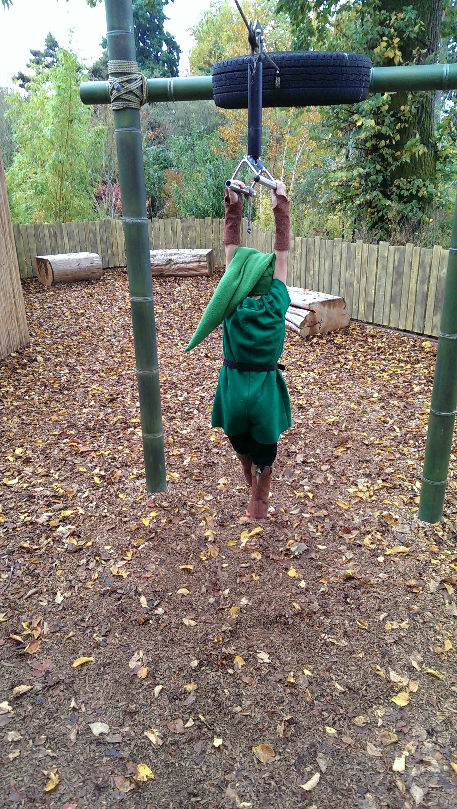Little did I know when I took them, that there would be more cuteness in store that evening. Back in October, I found a Link outfit at the thrift store. What turned into enthusiasm for the Legend of Zelda blossomed into full-on obsession. He even insisted on wearing the outfit to the zoo, and doing a lot of action moves on the zip line they have there: