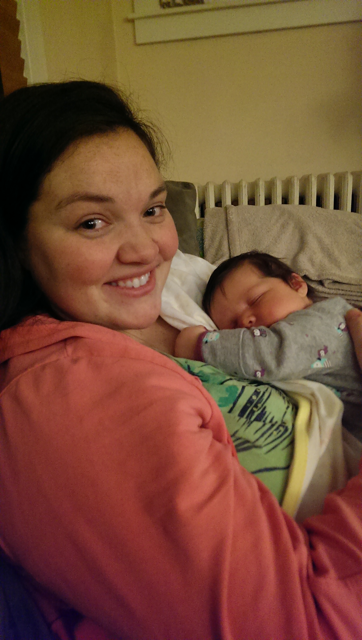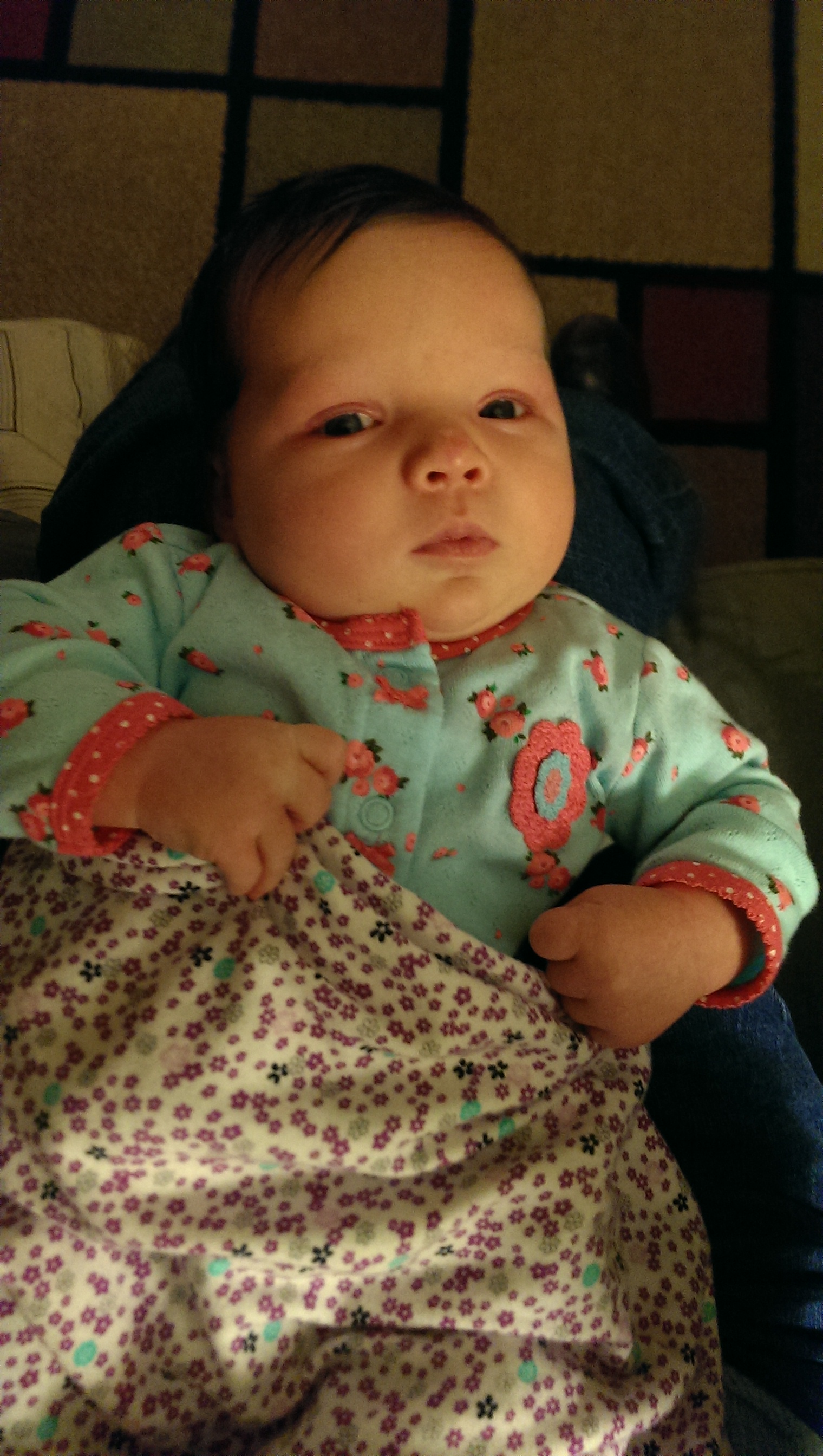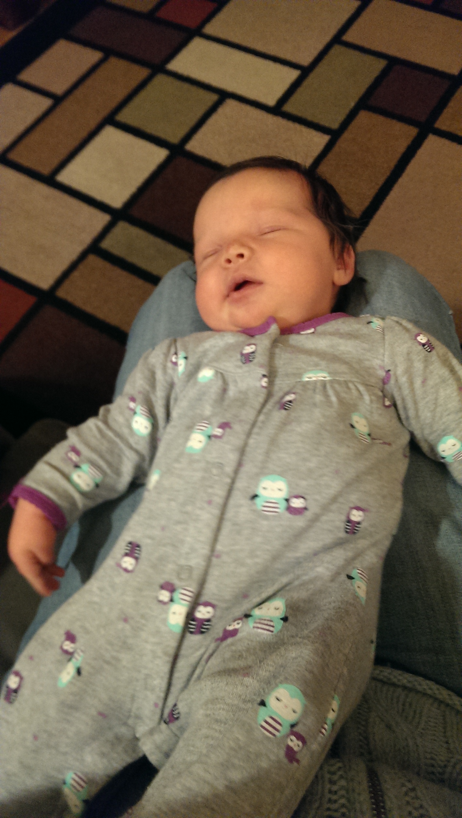 My little sister has caught up with me, kid-wise. Baby Emily, kid #4, arrived in town in January, but I didn’t get to see her until the beginning of February. She’s so snuggly — like her big brother Zak, she weighed some ten pounds at birth.