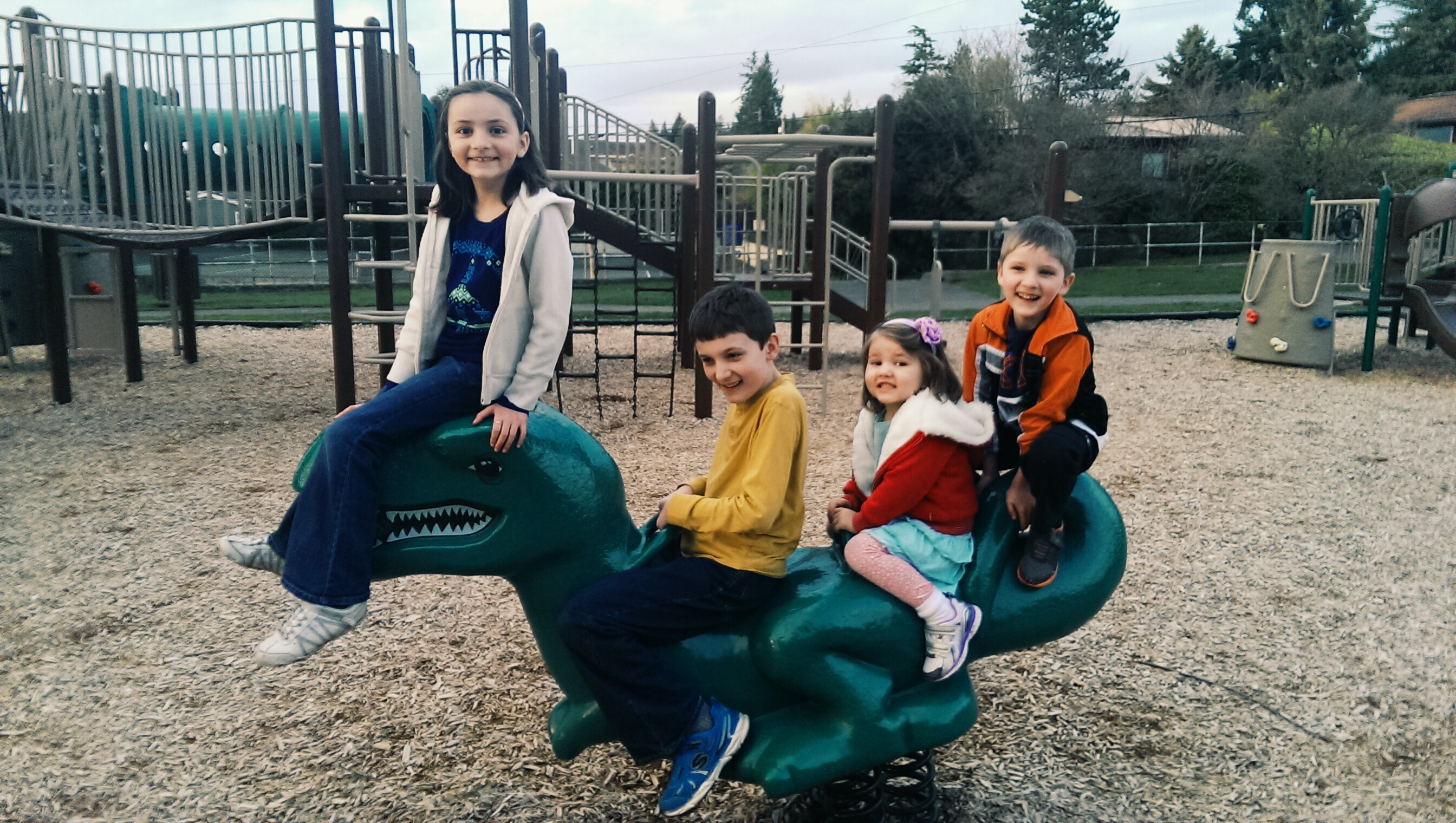 And this is a rare shot of all four children smiling at the same time. Nothing fancy, just a small miracle.
