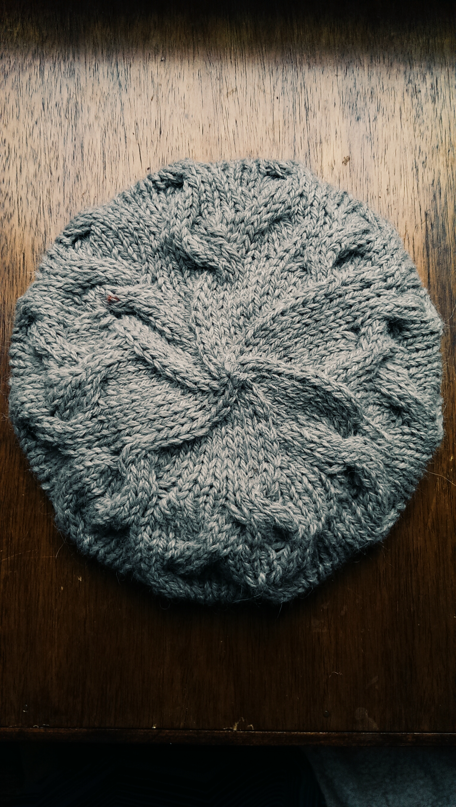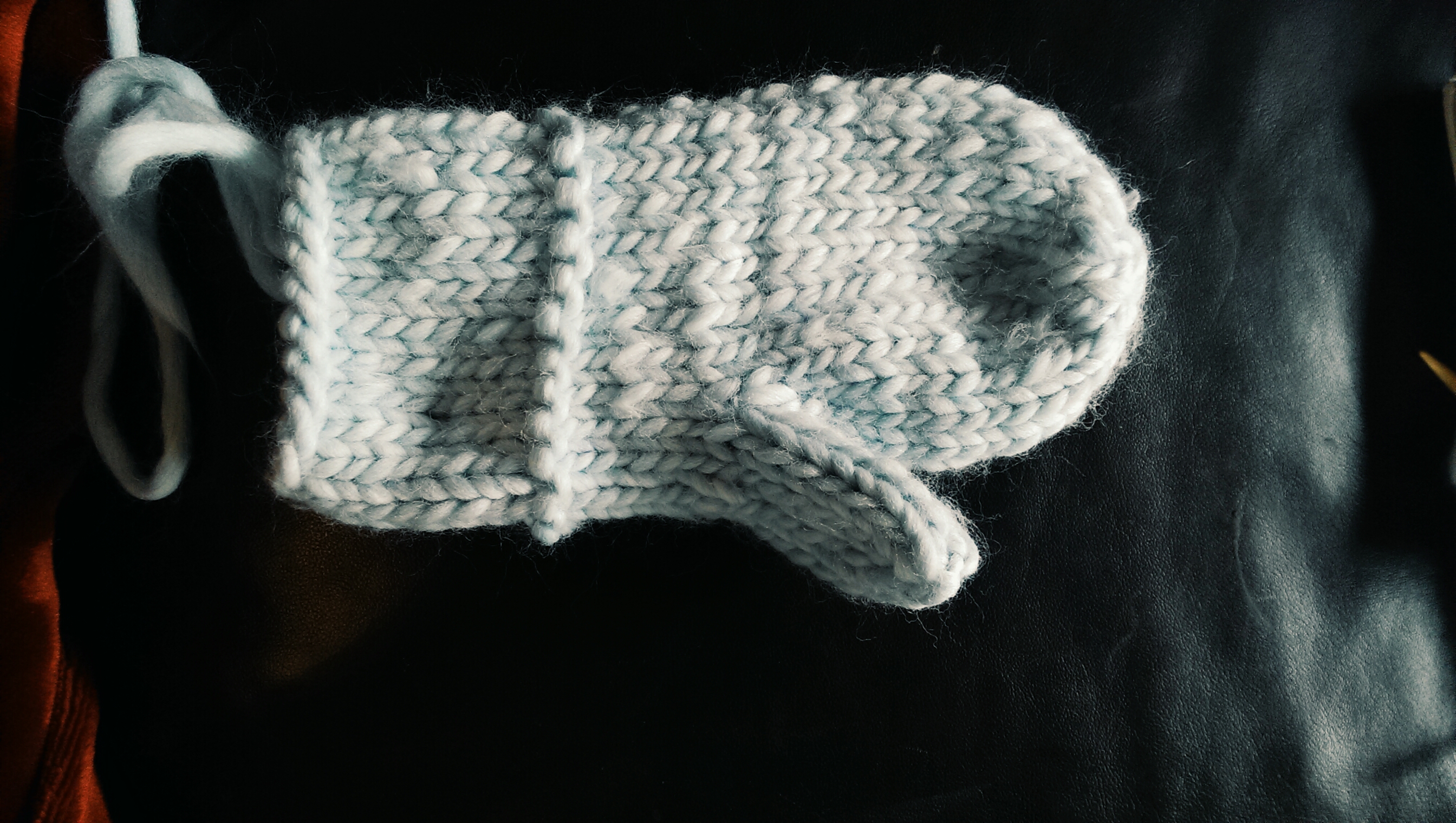 These next two are from knitting projects. The first is a hat that I made for my sister that turned out waaaaay too big. (Serves me right for not making a gauge swatch first.) The second is a mitten made by — Eleanor! It’s her first knitting project, too. Hopefully I can get her to finish the second one before winter returns.