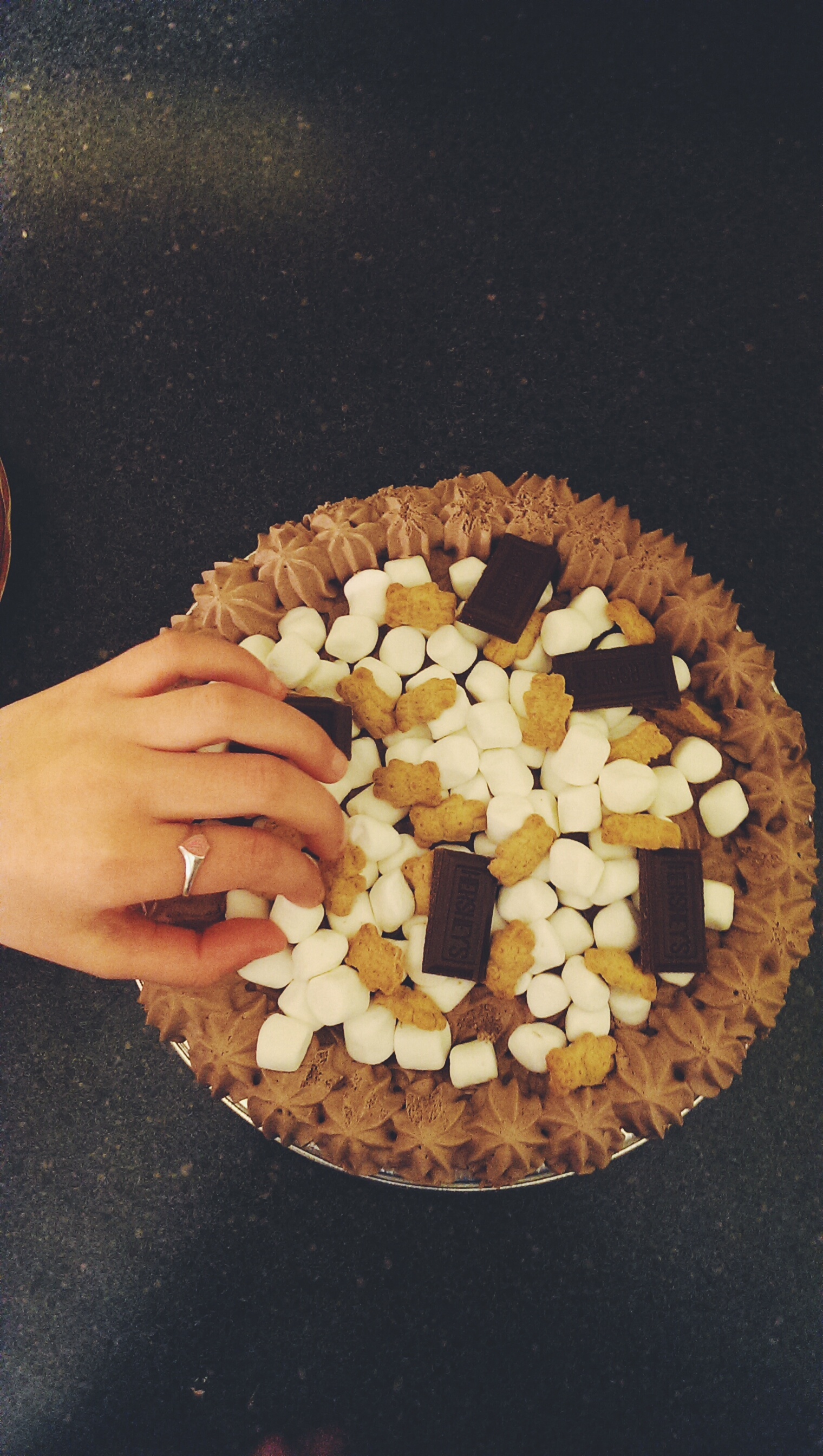Katie chose the flavor of the dessert pie, can you tell? What toddler could possibly resist something covered with marshmallows and Teddy Grahams? I wanted to take a snapshot of the s’mores pie but the kids kept snatching marshmallows off of the pie.  Cute, right?