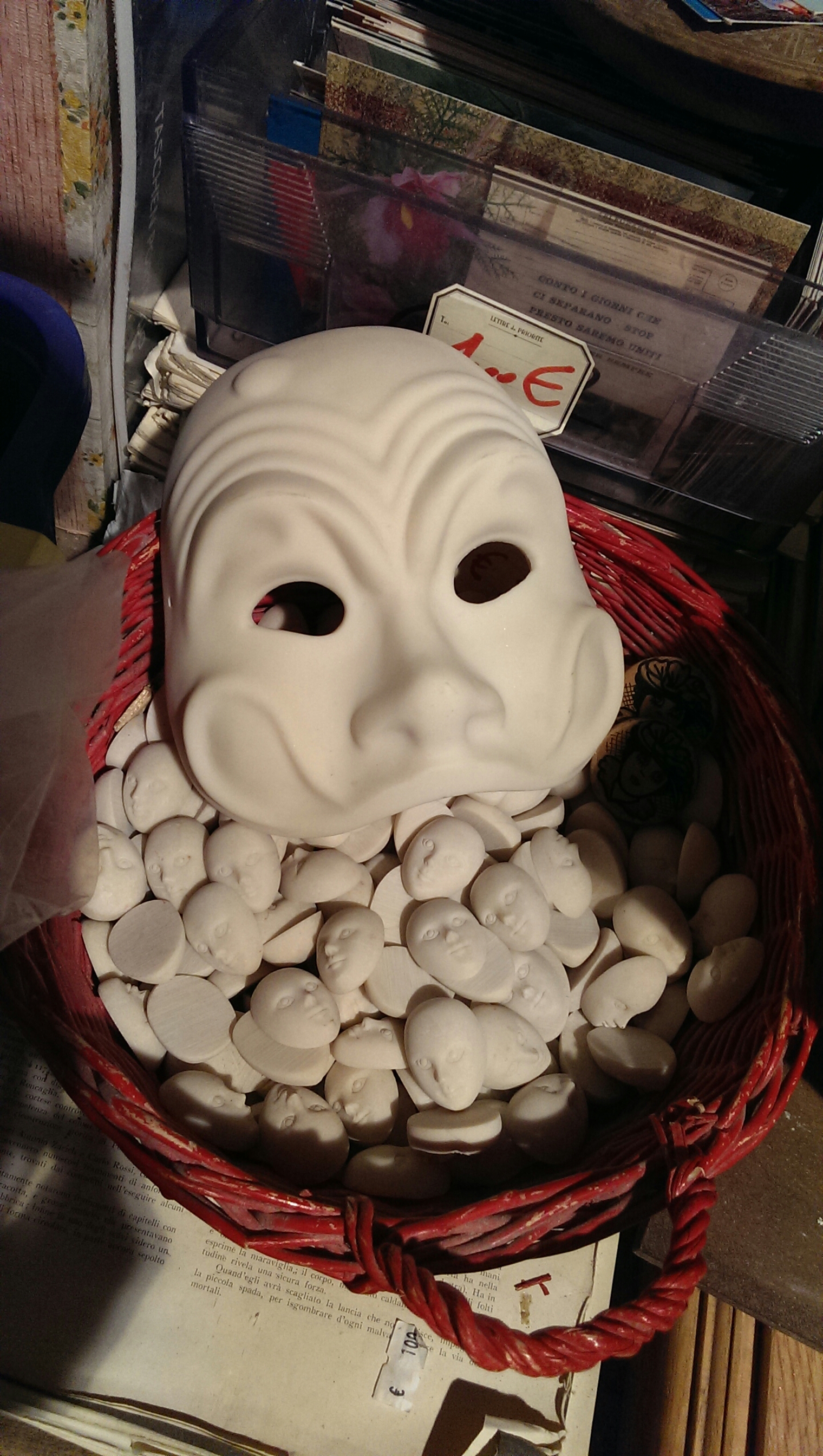 And . . . I’m not even sure what a person would do with a basked of plaster mini-masks. They aren’t even concave, so you can’t use them to do a Finger Puppet Phantom of the Opera.
