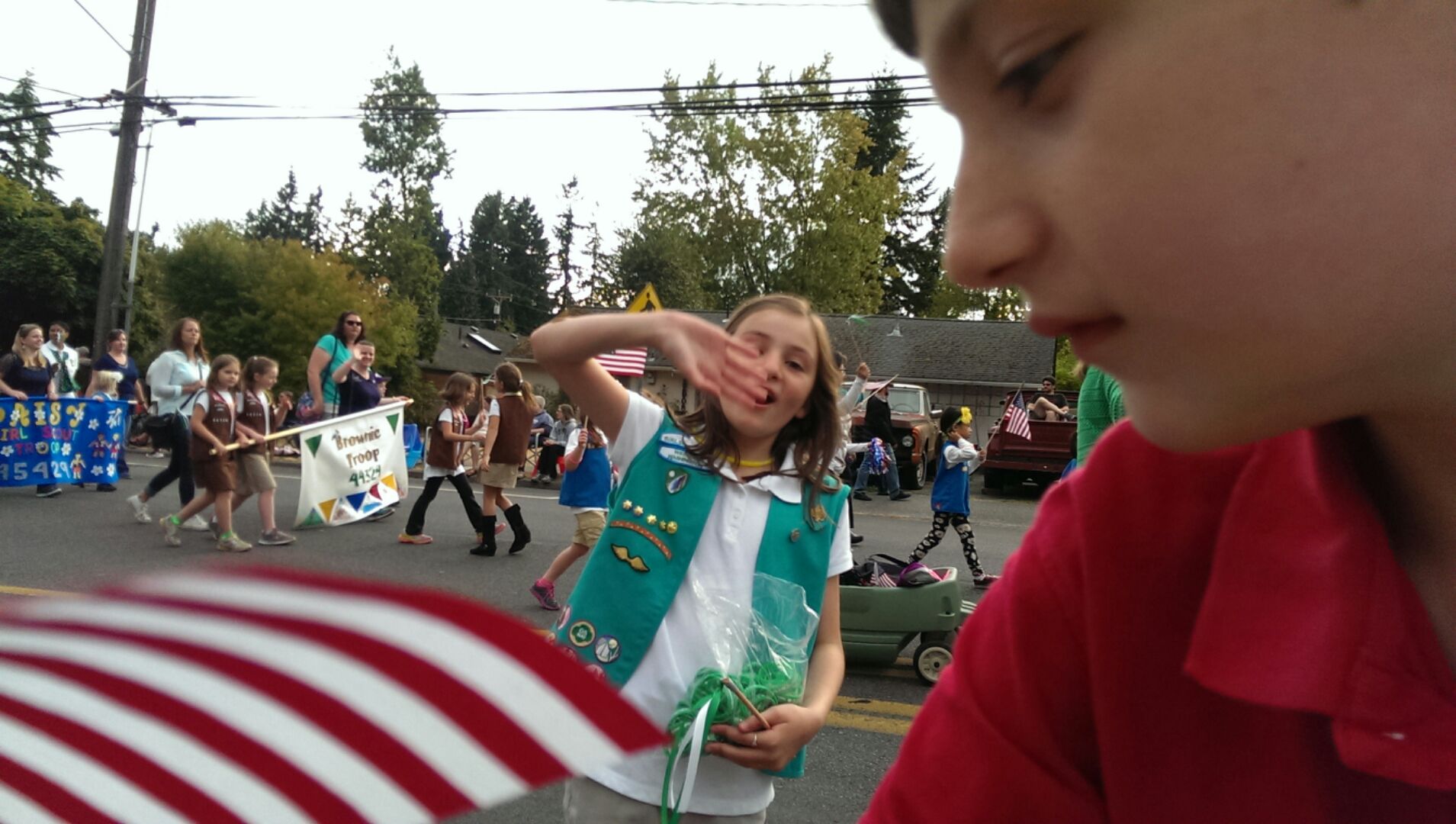 This year all the troops in her service unit were able to march together in the Tour de Terrace parade. This is part of a days-long celebration of town pride held by Mountlake Terrace, which is just northeast of where we live.