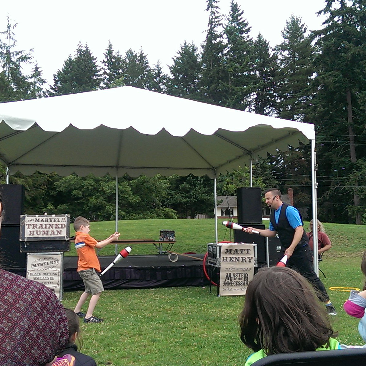 There was a “reptile show,” and later a juggling show, where William got to be a volunteer. It was cooler than it appears in this photo.
