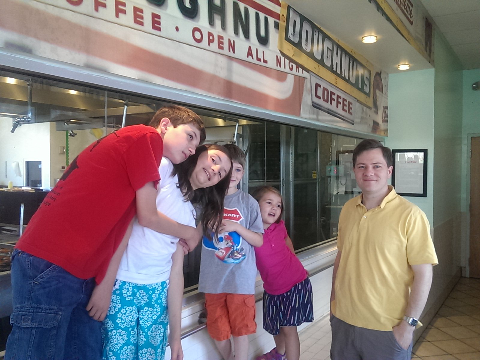 — Visit Uncle Alex at the Krispy Kreme donut store! He gave us two dozen donuts for free!!!