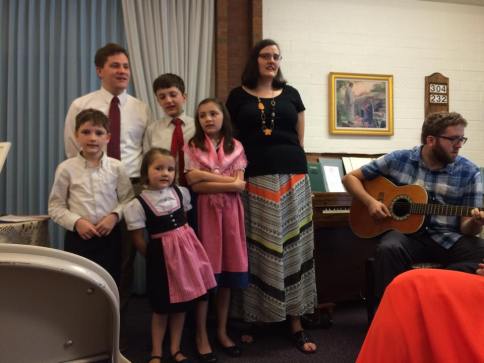 After the baptism we all took a moment to write down thoughts for William to go in a memory book, and then Brian, the kids, and myself all sang the “Faith, Hope & Charity” round that Brian wrote several months ago. Erich accompanied us on the guitar. I think we look a little too much like the Von Trapp Family Singers.