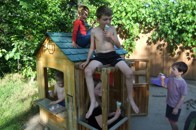 Now that we’re back home, the children are in the habit of putting on “plays” of their own. Brian and I were treated to an epic Western called “Eleanor the Sheriff,” which was accompanied by Jeffrey singing about whatever was happening “on stage.”