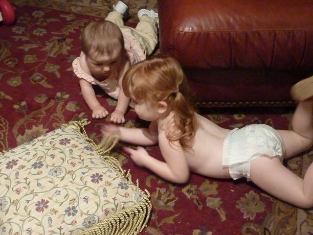 Meanwhile, June decided to show Katie how to properly chew on a pillow: