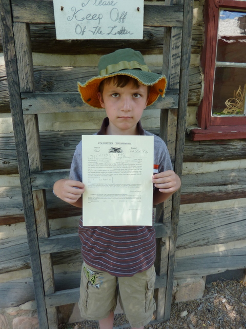 It was all part of “Voices of the Civil War” day at This is the Place Heritage Park. Jeff was in hog heaven. He got a gunny sack and a piece of hardtack . . .