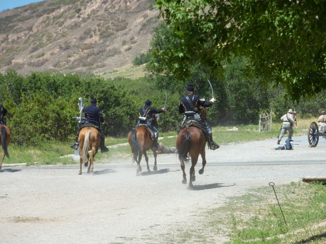 Jeffrey was now official! Which was a good idea, because trouble was brewing on the main street. Some Union calvarymen were attacked by a ragtag group of Rebel infantry out on the main street. Shots were fired, and the Southern troops either dropped down dead or ran away.
