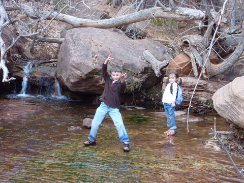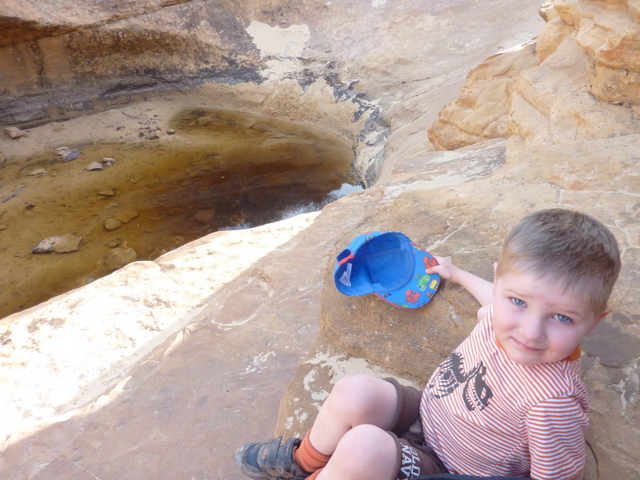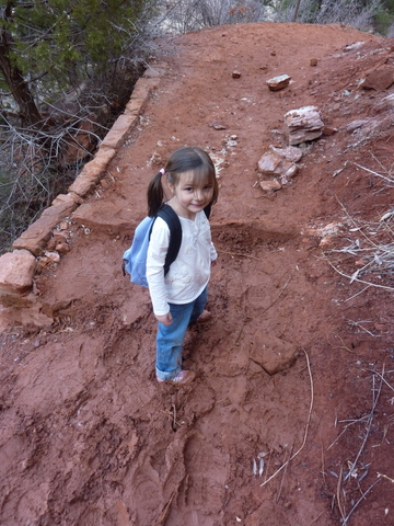 Right in the deepest part of the water tank. Which, fortunately, only went up to her waist, but still. The water was freezing, and it was the halfway point in the trail. This meant that Eleanor had to hike all the way out of the canyon with wet shoes, socks, and pants. Poor girl. She was brave about doing this, but she kept up a steady stream of complaints the whole while.