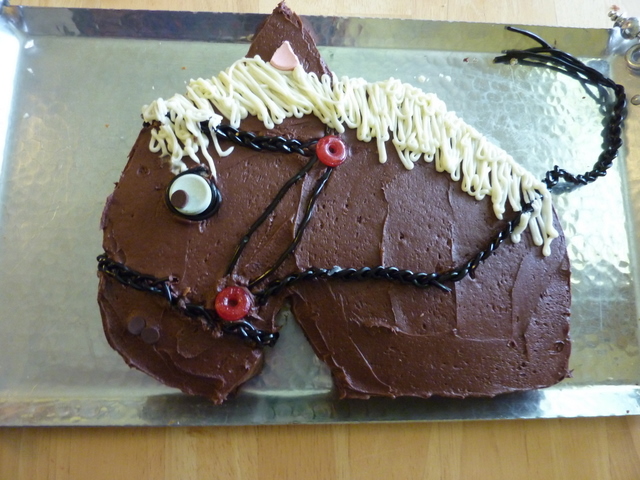 My main contribution was this horse cake. William insisted on the Life Saver bridle bits. Yes, the cake design is also from The Big Book of Theme-y Themes: